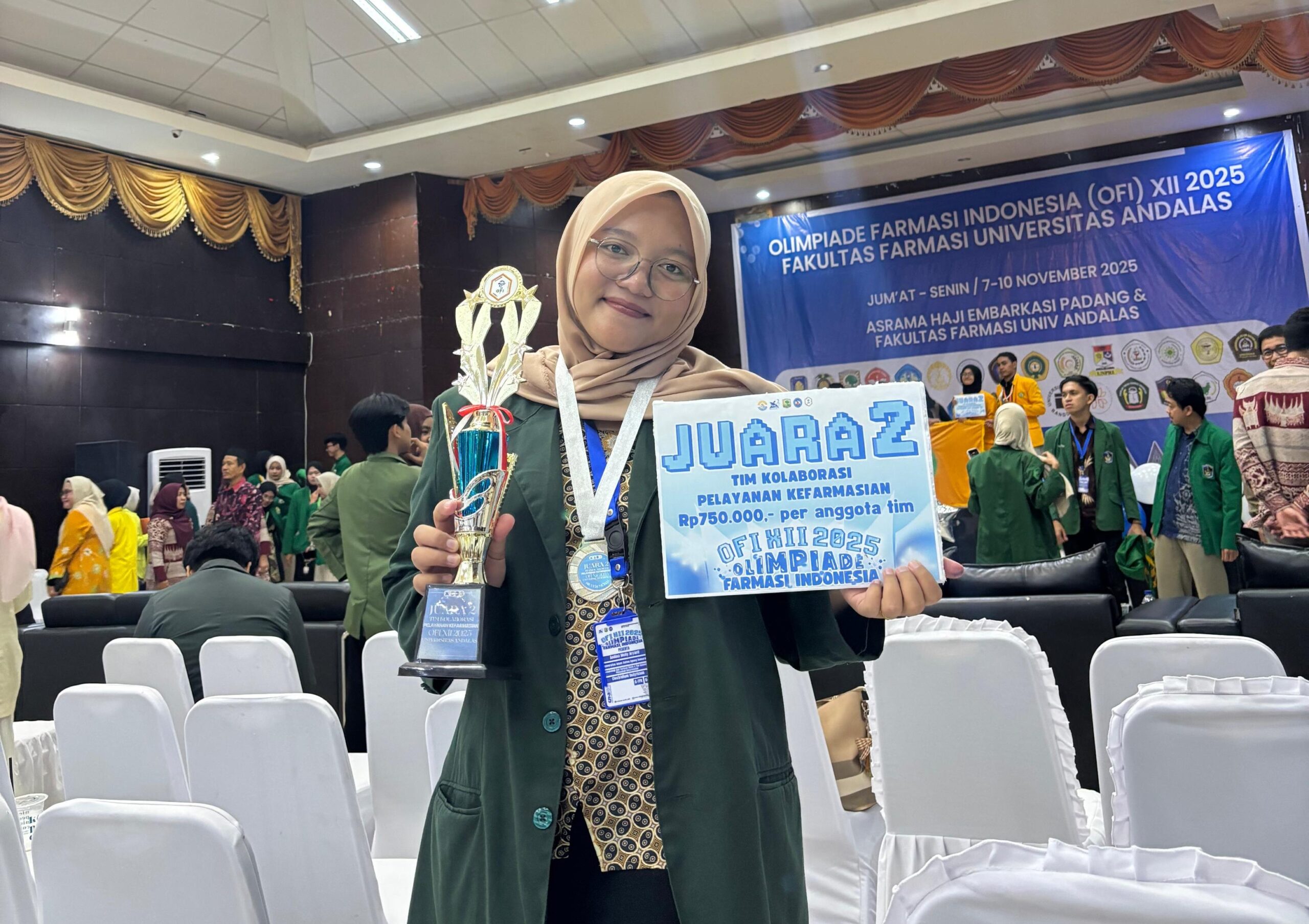 Andina Melly Aryanti mahasiswa Prodi Farmasi Fakultas Farmasi Unissula meraih juara 2 dalam ajang Olimpiade Farmasi Indonesia (OFI) XII 2025. Ia meraih juara dalam kategori pelayanan kefarmasian melalui kompetisi tim kolaborasi antar universitas. Andina berkolaborasi dengan mahasiswa Universitas Brawijaya dan mahasiswa STIFAR Riau. Mereka berlaga bersama 29 perguruan tinggi negeri dan swasta dari berbagai wilayah Indonesia, Senin (10/11/2025).
